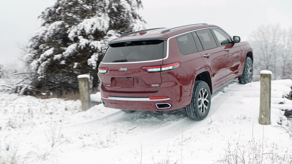 The Jeep Grand Cherokee L Overland has a combination of exterior and interior upgrades, including front tow hooks, 20-inch aluminum wheels, a hands-free liftgate, a dual-pane sunroof, ventilated front seats, navigation, and leather upholstery to tackle just about any terrain around Summit.