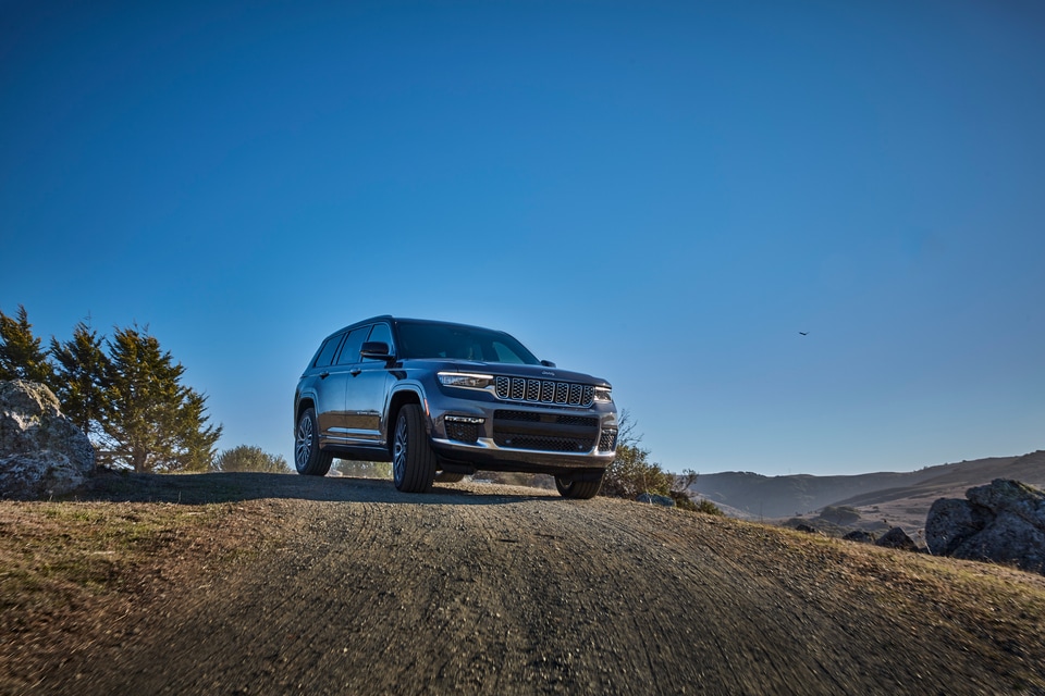 The Jeep Grand Cherokee L Summit raises the bar with a glossy black roof, massaging front seats, four-zone climate control, an Alpine sound system, more safety technology, and an adaptive air suspension system.