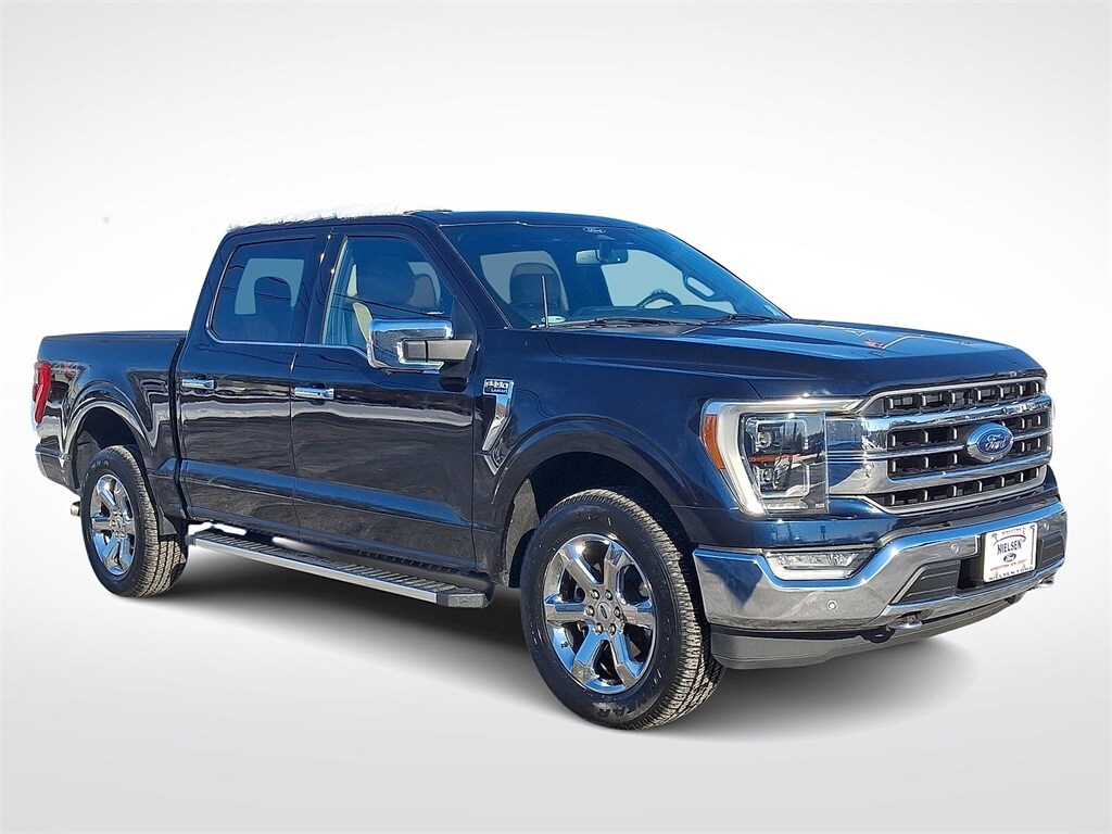 Antimatter Blue Metallic 2022 Ford F-150 Lariat 4WD 10-Speed Automatic 3.5L V6 EcoBoost 4WD, 2nd Row Heated Seats, 360 Degree Camera, 6" Bright Polished Running Board, Bed Utility Package, BoxLink, Chrome 2-Bar Grille w/4 Minor Bars, Chrome Door & Tailgate Handles w/Body-Color Bezel, Chrome Single-Tip Exhaust, Chrome Skull Caps on Exterior Mirrors, Connected Built-In Navigation, Equipment Group 502A High, Evasive Steering Assist, Ford Co-Pilot360 Assist 2.0 (DISC), Heated Steering Wheel, Integrated Trailer Brake Controller, Intelligent Adaptive Cruise Control w/Stop & Go, Intersection Assist, Lariat Chrome Appearance Package, Leather-Trimmed Bucket Seats, LED Box Lighting, LED Projector w/Dynamic Bending Headlamps, Onboard 400W Outlet, Power Glass Sideview Mirr w/Chrome Skull Caps, Power Tailgate, Power Tilt/Telescoping Steering Column w/Memory, Pro Trailer Backup Assist, Radio: B&O Sound System by Bang & Olufsen, Rain-Sensing Wipers, Speed Sign Recognition, Tailgate Step w/Tailgate Work Surface, Tow Technology Package, Universal Garage Door Opener, Wheels: 18" Chrome-Like PVD, Wireless Charging Pad.